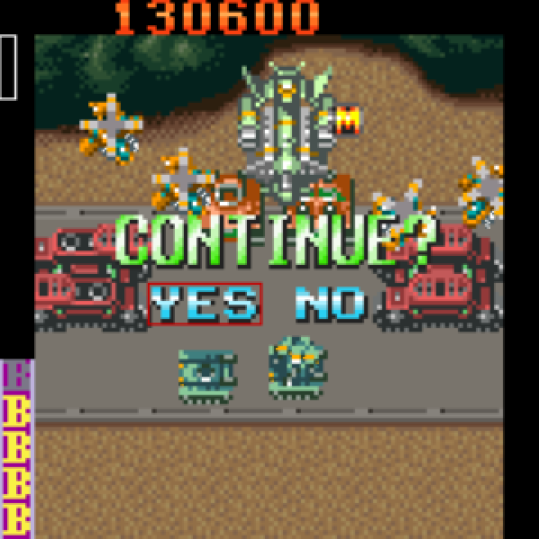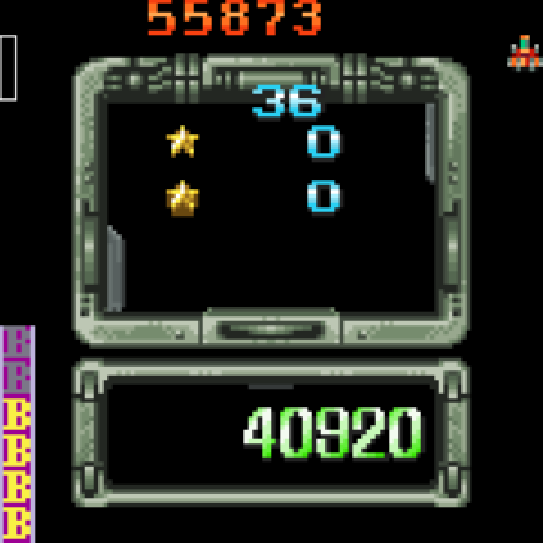 Each of the three ships does feel unique and represents the pedigree of the series well. Two stages are available and you can begin on stage 2 when starting. Entering level 1, it’s astonishing just how well the game actually runs. It’s smooth and features a fair amount of bullets, particulary for the 240×240 screen. The added difficulties present even-more firepower to dodge and the game scrolled fluidly, even with all these on-screen projectiles.